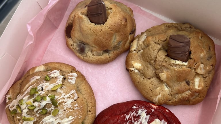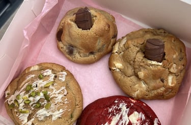 Découvrez notre boîte de 4 cookies gourmands et délicieux, spécialement conçus pour satisfaire toutes vos envies sucrées.